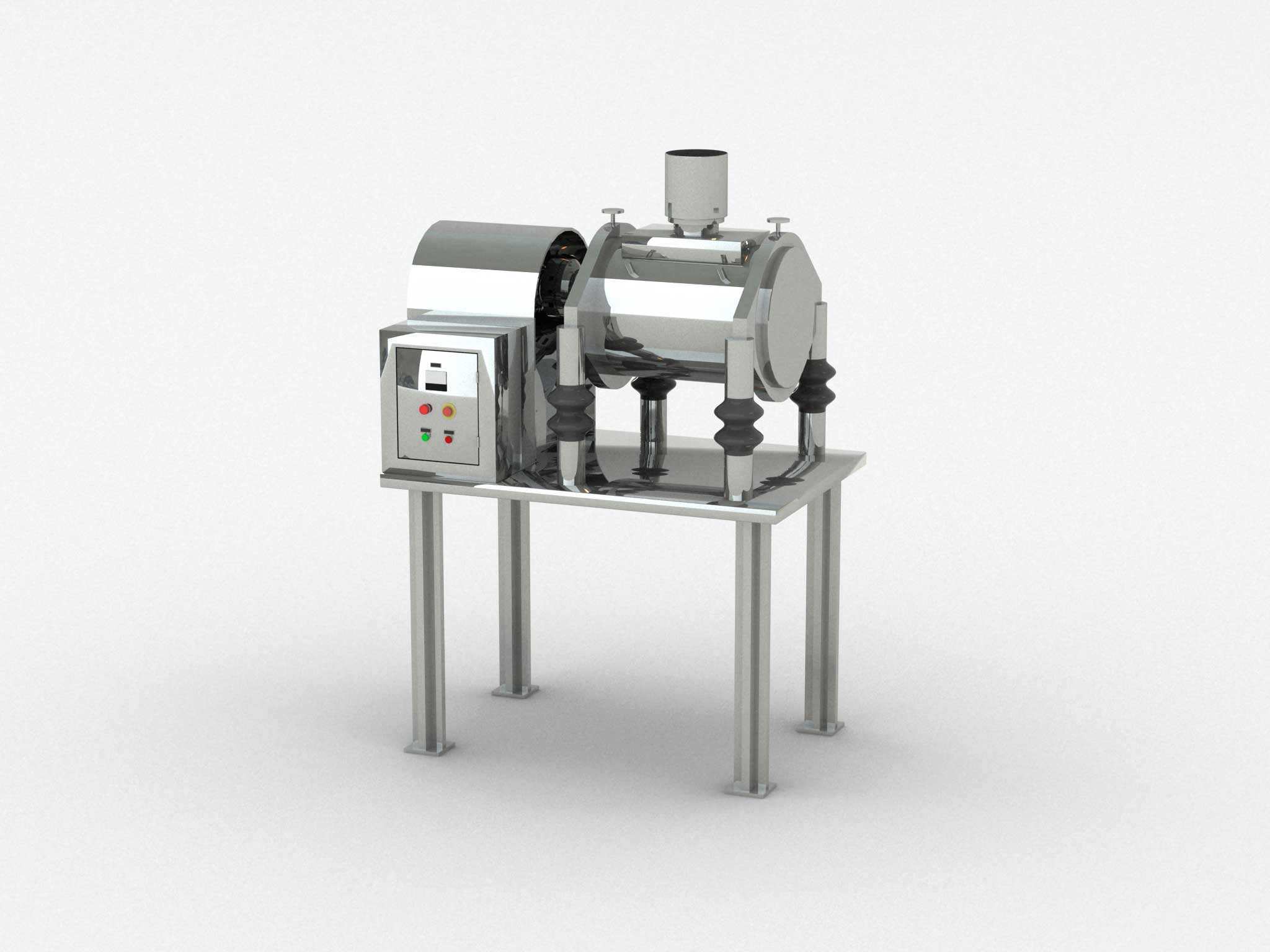 工作原理:该机为卧式振动磨,物料由加料斗进入粉碎室,经振动将粉碎室内的研磨棒与物料碰撞、研磨而获得粉碎,该机配有水冷装置,可控制粉碎室内的温度,整机按“GMP”标准设计,采用不锈钢制造,设备在密封状态下作业。无粉尘飞扬,无环境污染。